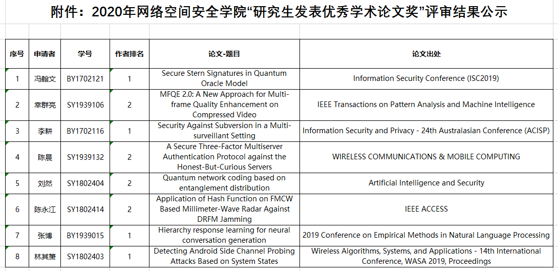 名单详见附件:2020年yl7703永利“研究生发表优秀学术论文奖”评审结果公示,