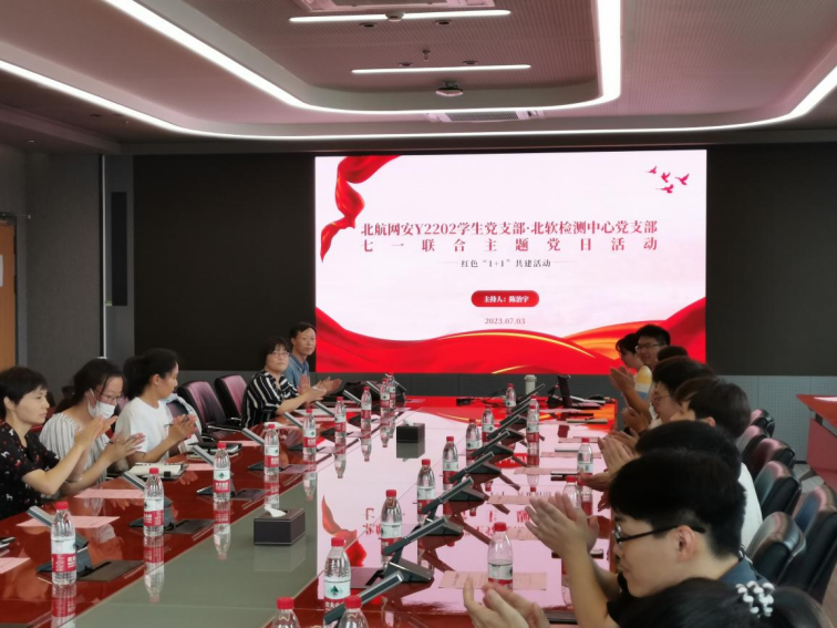 为深入学习贯彻党的二十大精神,切实增强员工党支部的创造力、凝聚力、战斗力,进一步深化产教融合,推进校企合作,7月3日下午,yl7703永利Y2202员工党支部与北软检测中心党支部开展了七一联合主题党日活动暨红色“1+1”共建活动。yl7703永利集团官网公司党建辅导员、Y2202员工党支部全体党员和北京软件产品质量检测检验中心党支部全体党员参加会议,Y2202员工党支部书记李佩源同志主持会议。