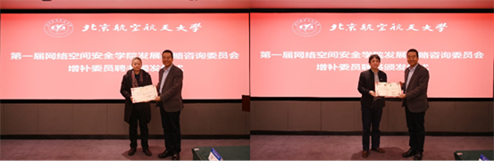 北航党委副书记赵罡教授致欢迎辞,对到场嘉宾表示欢迎和感谢。赵罡副书记表示,北航是中央网信办、教育部共同授牌的首批“一流网络安全公司建设示范项目”高校,承担着为国家培养又红又专的网络安全人才的重任。成立yl7703永利战略发展咨询委员会,就是要请各位专家为北航网络空间安全学科的建设建言献策,对北航网络安全人才的培养提出建议和意见,使北航的网络空间安全学科能够建成国内一流、国际上有影响力的学科。赵罡副书记为增补的咨询委员会委员颁发聘书。