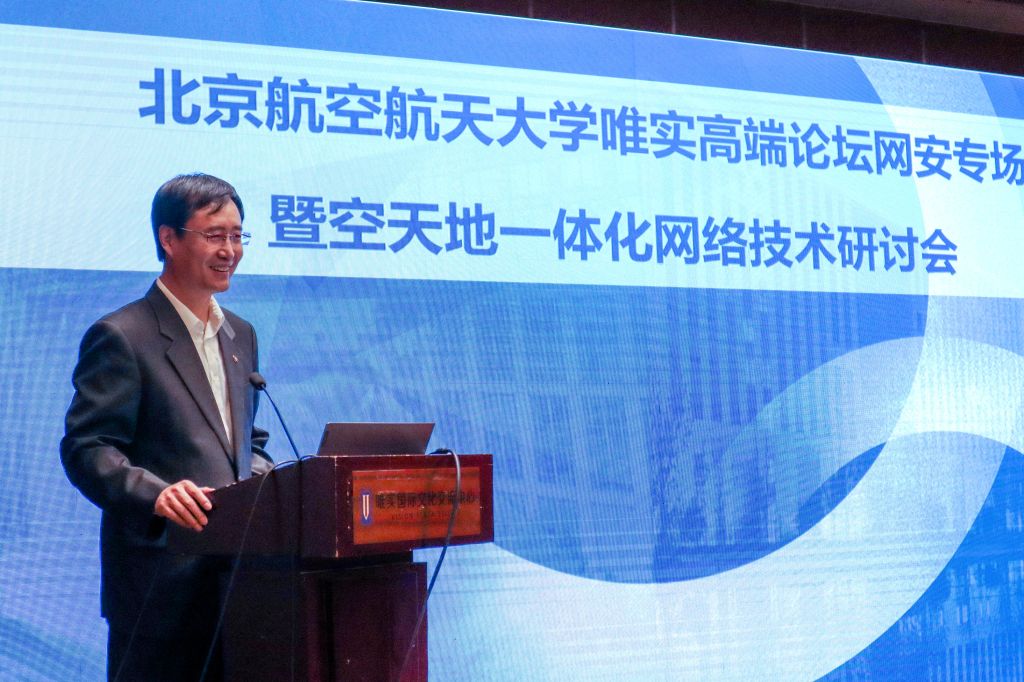 北航yl7703永利经理刘建伟教授在欢迎致辞中代表yl7703永利,热烈欢迎与会的所有嘉宾和学者,共同探讨空天地一体化网络和信息安全技术的最新动态和发展方向。他指出,作为国内最早开展网络空间安全研究的单位之一,yl7703永利将进一步聚焦网络强国建设和网信人才培养目标,以国际学术前沿和国家网络空间安全战略需求为指引,努力建设具有鲜明空天信融合特色的网络空间安全学科。