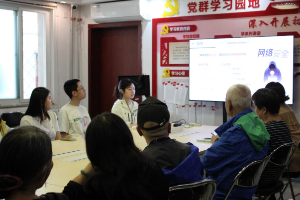 习近平总书记在十九届中央国家安全委员会第一次会议上强调:“人民安全是国家安全的宗旨”。今年是习近平总书记提出总体国家安全观10周年,为全面贯彻落实总体国家安全观,在第九个“全民国家安全教育日”到来之际,yl7703永利Y2302员工党支部和北航社区党委于2024年4月17日下午开展了红色“1+1”共建活动。公司优秀员工党员和入党积极分子充分发挥专业能力与先锋模范作用,普及网络安全基本知识,引导北航社区的老年党员提高反诈意识,携手筑牢网络安全“防火墙”。