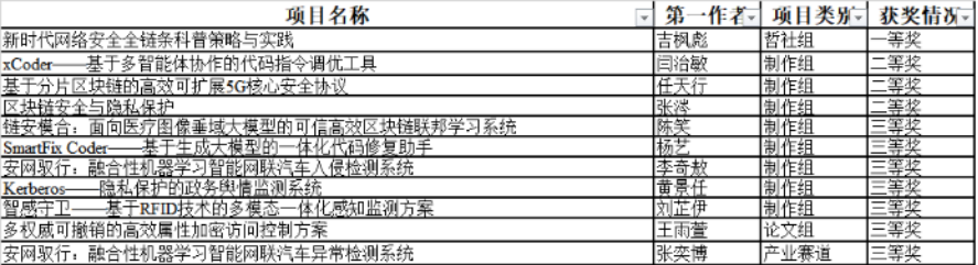 经过院校两级评审、现场答辩等环节,第三十四届冯如杯科技竞赛于2024年5月27日落下帷幕,在本次竞赛中,网安学子取得了优秀的成绩,获得一等奖1项、二等奖3项、三等奖7项。