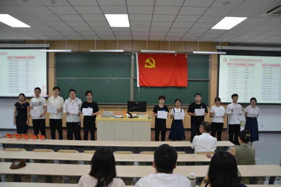 在会议的第三项议程中,举行了拟发展对象短期集中培训结业证书颁发仪式。本期发展对象短期集中培训班通过理论学习、实践锻炼等环节,全面提升了学员的思想政治素质。管天玉同志和张晗同志共同为通过考核的发展对象代表颁发了结业证书。这些发展对象在培训过程中认真学习、积极实践,通过系统的培训和严格的考核,进一步坚定了理想信念,提高了政治觉悟。颁发结业证书不仅是对他们学习成果的认可,更是对他们未来在党建工作中发挥更大作用的期待。公司党委希望这些发展对象能够以此次培训为起点,继续在思想上、行动上向党组织靠拢,为公司的党建工作注入新的活力。