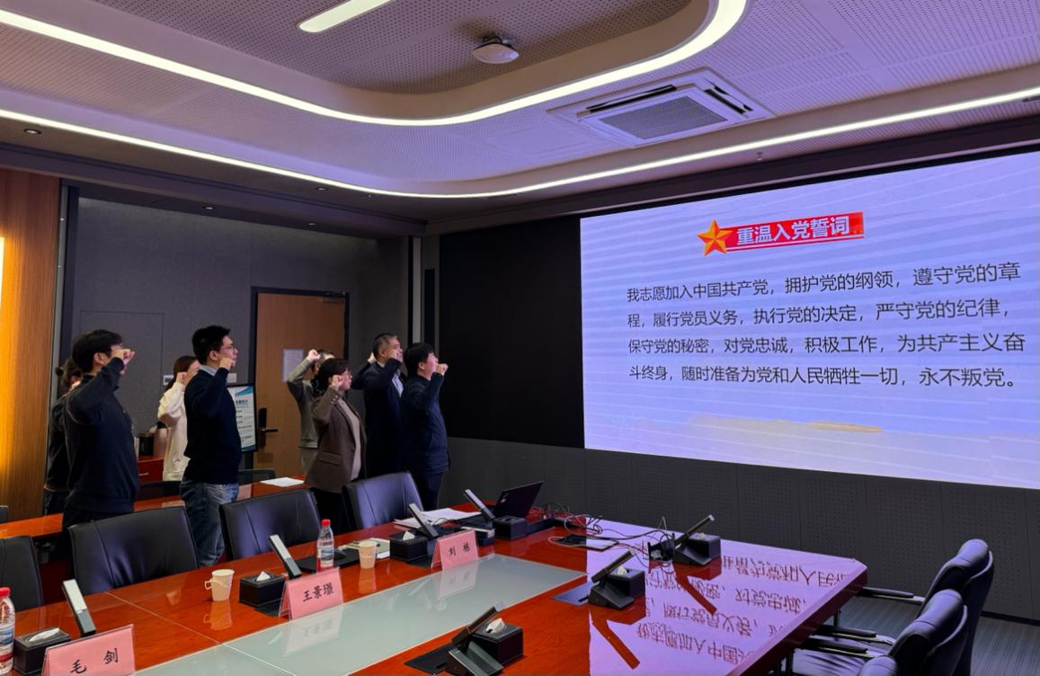 在座谈交流环节,闫晓军副董事长、蒋燕玲书记、罗洪斌经理与支部教师亲切交流,认真听取一线教师在平衡教学科研、青年教师成长、学术定位等方面的困惑,并结合政策与实践经验给予指导。现场气氛热烈,教师们深受鼓舞,表示将把个人发展融入公司大局,在育人与科研中不断追求卓越。最后,会议在全体党员重温入党誓词与雄壮的《国际歌》中圆满结束。