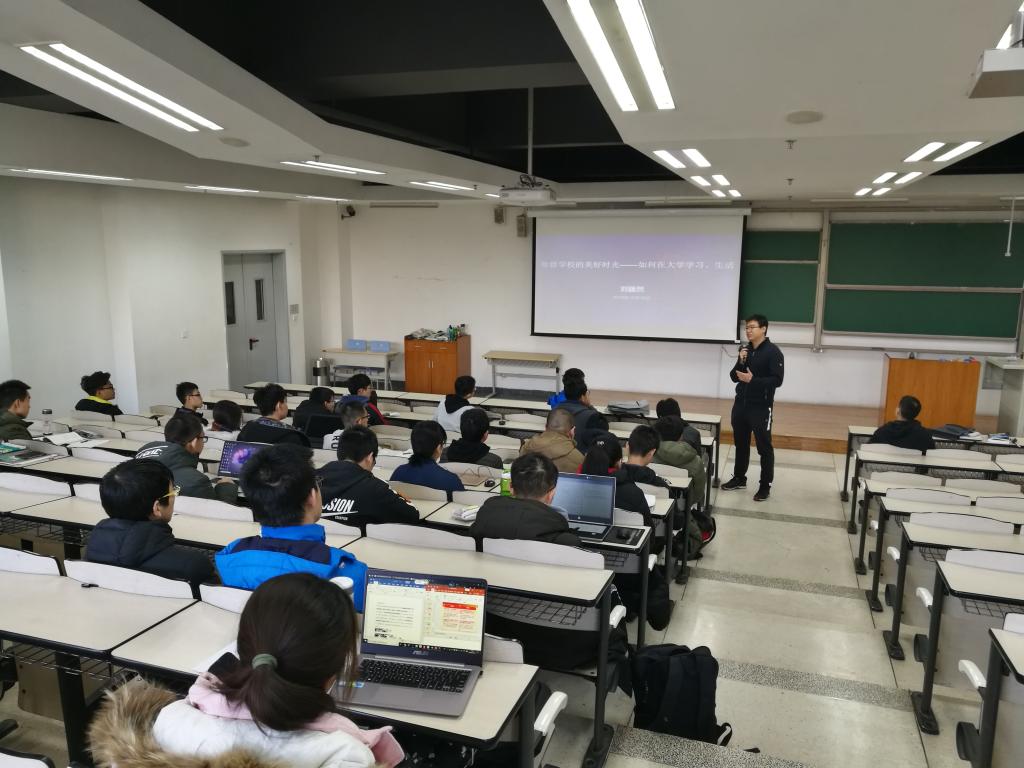 会上,刘巍然简要介绍了自己基本情况,与同学们分享了其大学学习期间的主要经历以及学习成果,并结合自身经历介绍了关于英语学习、出国求学、工作择业的感悟。随后,他针对同学们关心的冯如杯竞赛、英语学习、创新创业等问题,以风趣幽默的方式予以耐心解答。