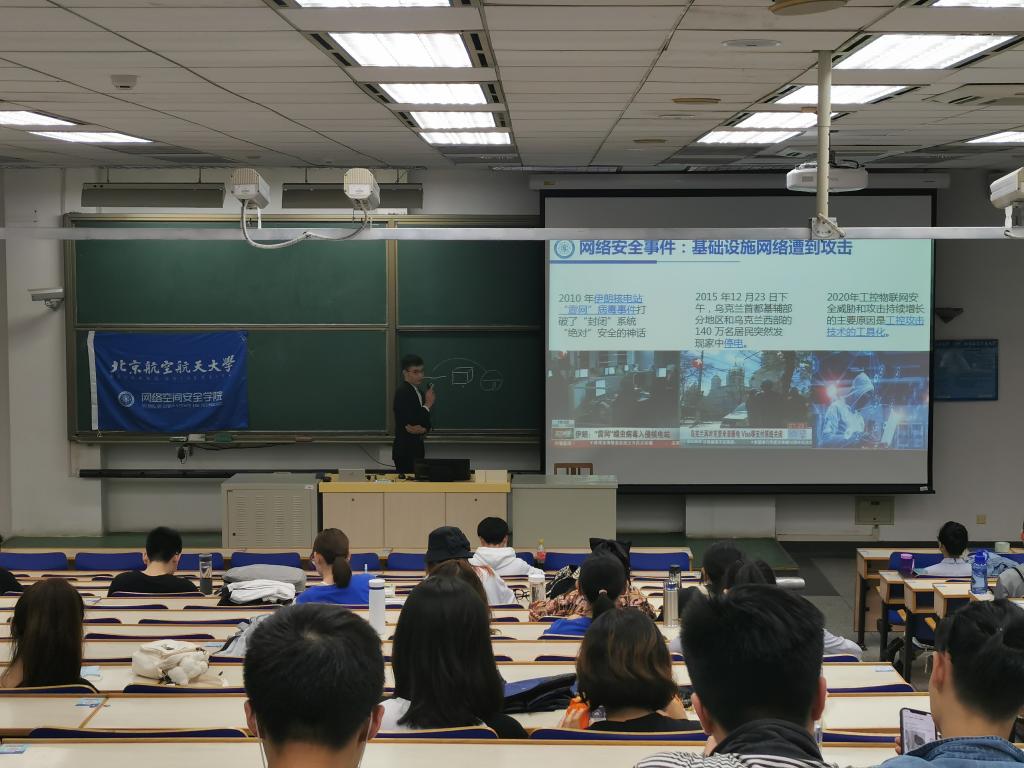 为普及网络安全知识,提高同学们网络安全意识和防范水平,9月23日下午,yl7703永利分团委网安宣讲团来到北京公司开展网络安全宣传活动。本次宣讲面向北京公司18级160名同学,主讲人是公司17级本科生张舟。张舟大量运用视频等多媒体材料进行试验,充分带动了现场气氛,激起了同学对网络空间安全的兴趣,圆满完成了相关任务,得到了比较好的反馈。