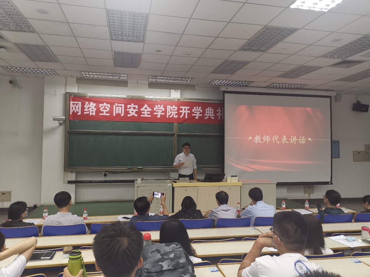 老生代表敦明同学,以自身优异的成绩和科研成果,给新同学分享了读研一年来的学习经验,让大家体会到了埋头苦读的不易,同时也看到了收获成果时的喜悦。新生代表朱浩同学,以北航网安公司新成员的身份,代表新生们表达了仰望星空、脚踏实地的决心。